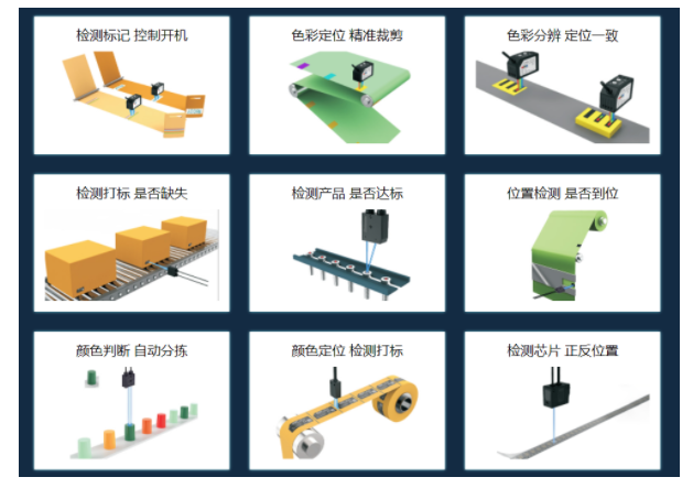 顏色傳感器主要用于檢測目標物體表面顏色,主要在工業、醫療和安防系統中有著廣泛的應用。常見用途有混料檢測、有無檢測、污漬檢測等等。