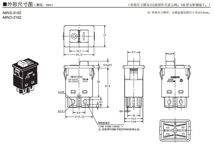 A8ND-3162船形歐姆龍開關(guān)